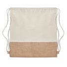 Baumwollbeutel mit Kordelzug und Jute-Einsätzen. Lange Henkel. 160 g/m². Größe: 380 x 410mm